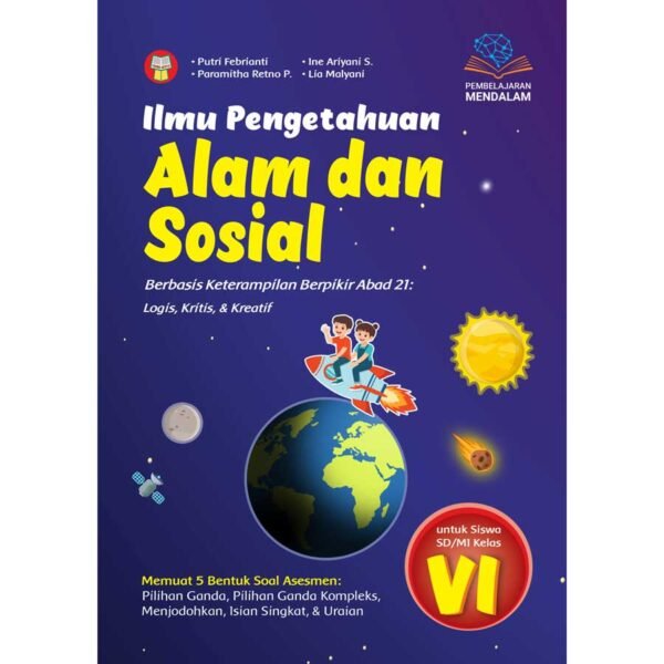 Dua hal penting yang harus dimiliki siswa adalah karakter yang baik dan keterampilan abad 21. Karakter baik berlandaskan delapan dimensi profil lulusan, yaitu: keimanan dan ketakwaan kepada Tuhan Yang Maha Esa, kewargaan, penalaran kritis, kreativitas, kolaborasi, kemandirian, kesehatan, dan komunikasi. Sementara itu, keterampilan abad 21 mencakup daya cipta dan inovasi (creativity and innovation), berpikir kritis (critical thinking), pemecahan masalah (problem solving), pengambilan keputusan (decision making), serta cara belajar dan metakognisi (learning to learn and metacognition). Buku “Ilmu Pengetahuan Alam dan Sosial Berbasis Keterampilan Berpikir Abad 21 untuk Siswa SD/MI Kelas VI” disusun berdasarkan Kurikulum Merdeka dengan menggunakan pendekatan Pembelajaran Mendalam. Buku ini dirancang untuk membantu siswa kelas VI memahami konsep-konsep kunci Ilmu Pengetahuan Alam dan Sosial melalui konteks nyata, kegiatan praktikum, diskusi, serta tugas projek yang menumbuhkan keterampilan berpikir kritis, kreatif, serta reflektif. Penyusunan buku ini mengacu pada kebijakan pengembangan kurikulum yang tercantum dalam Keputusan Kepala Badan Standar, Kurikulum, dan Asesmen Pendidikan Kementerian Pendidikan, Kebudayaan, Riset, dan Teknologi Nomor 032/H/KR/2024 tentang Capaian Pembelajaran pada Pendidikan Anak Usia Dini, Jenjang Pendidikan Dasar, dan Jenjang Pendidikan Menengah dalam Kurikulum Merdeka. Materi dalam buku ini disusun untuk memperluas dan memperdalam materi inti (esensial) yang telah disajikan dalam Buku Teks Utama yang diterbitkan oleh Kemendikbudristek. Rubrik-rubrik yang terdapat di dalam buku ini bertujuan agar siswa dapat menyerap, memahami, dan mengaplikasikan pengetahuan yang diperolehnya dalam kehidupannya sehari-hari. Selain itu, buku ini juga memuat berbagai tipe asesmen dalam lima bentuk, yaitu pilihan ganda, pilihan ganda kompleks, isian singkat, uraian, dan menjodohkan. Susunan asesmen dirancang secara bertahap, mulai dari tingkat kesulitan yang paling sederhana hingga yang membutuhkan pemikiran lebih mendalam.