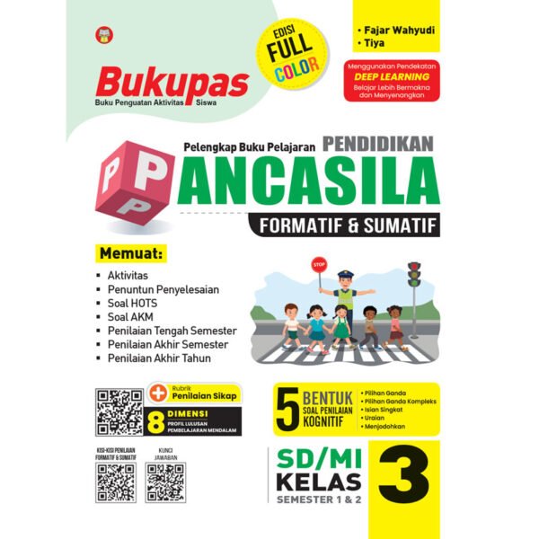 “Bukupas (Buku Penguatan Aktivitas Siswa) Pendidikan Pancasila untuk SD/MI Kelas 3” ini disusun berdasarkan Capaian Pembelajaran. Buku ini bertujuan sebagai pelengkap buku pelajaran Pendidikan Pancasila yang digunakan di sekolah dan sumber pengayaan bagi guru untuk kegiatan belajar di sekolah serta memandu orang tua/wali dalam pendampingan pembelajaran di rumah. Pada buku ini disajikan panduan Penilaian Formatif dan Sumatif. Penilaian Formatif merupakan penilaian yang dilakukan oleh guru pada saat proses pembelajaran sedang berlangsung. Sementara itu, Penilaian Sumatif merupakan penilaian yang dilakukan oleh guru pada periode tertentu dan hasil penilaiannya diakumulasi sebagai nilai rapor. Buku ini dilengkapi dengan ringkasan materi dan berbagai aktivitas dalam bentuk soal-soal yang bervariasi, seperti soal reguler, soal HOTS, dan soal AKM. Seluruh soal yang disajikan di dalam buku ini didasarkan pada materi yang telah dirancang sesuai dengan Tujuan Pembelajaran. Melalui berbagai variasi soal ini, diharapkan dapat menjadi acuan siswa untuk lebih siap dalam menghadapi berbagai ujian. Di samping itu, buku ini juga dilengkapi dengan remedial dan pengayaan. Tidak hanya itu, buku ini juga dilengkapi dengan kode QR yang berisi tentang kisi-kisi penilaian formatif dan sumatif serta kunci jawaban. Selamat belajar untuk menggapai cita-cita!