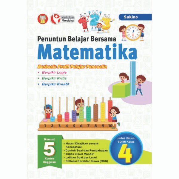 Buku "Penuntun Belajar Bersama Matematika untuk Siswa SD/MI Kelas 4" ini disusun khusus untuk membantu siswa memiliki keterampilan berpikir abad 21 dan berkarakter baik. Di samping itu, buku ini hadir untuk siswa yang ingin mengulang serta memperdalam materi Matematika Kelas 4 yang sudah dipelajari di sekolahnya masing-masing. Buku Penuntun Belajar Bersama Matematika untuk Siswa SD/MI Kelas 4 ini menuntun siswa memiliki dua aspek penting dalam pembelajaran, yaitu penguasaan konsep dan keterampilan berpikir. Penguasaan konsep didapatkan siswa dengan mempelajari konsep-konsep yang disajikan pada materi. Sementara itu, keterampilan berpikir didapatkan siswa dengan mencermati contoh soal dan mengerjakan latihan soal yang ada di dalam buku. Adapun Susunan buku ini, meliputi Ringkasan Materi, Contoh Soal, Latihan, dan Trending Math. Ringkasan Materi disusun secara mendasar dan mendalam. Di samping itu, untuk mempermudah pemahaman konsep, disajikan visualisasinya dalam bentuk gambar. Contoh Soal diselesaikan dengan beberapa alternatif penyelesaian sehingga siswa dituntun untuk memiliki keterampilan berpikir yang dinamis (logis, kritis, dan kreatif). Latihan dibuat bertingkat sesuai tingkat kesukaran soal, mulai dari Level 1, Level 2, dan Level 3. Di dalam buku ini juga ditambahkan rubrik berupa Trending Math yang berisi soal-soal pemecahan masalah. Soal-soal yang disajikan dalam buku ini dapat digunakan oleh siswa sebagai penuntun belajar siswa untuk menghadapi berbagai jenis ujian, mulai dari Penilaian Harian sampai soal tingkat Olimpiade Sains Nasional (OSN). Di samping itu, buku ini bisa menjadi referensi bagi orang tua/wali untuk mengajarkan putra/putrinya di rumah dan referensi bagi guru untuk melihat bentuk-bentuk soal yang bisa digunakan untuk berbagai jenis ujian.