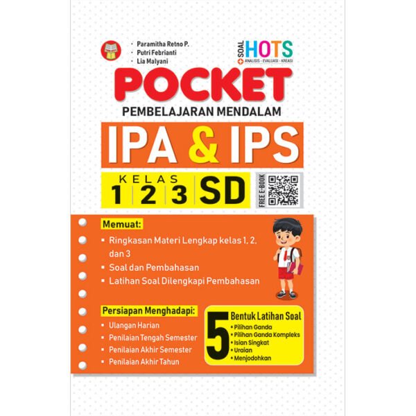 Buku Pocket IPA & IPS untuk SD Kelas 1, 2, dan 3 Sesuai dengan judulnya Pocket Pembelajaran Mendalam IPA & IPS, buku ini dirancang khusus dengan ukuran kecil supaya ringan dan mudah dibawa ke mana-mana. Meskipun demikian, materi dan soal-soal yang disajikan tetap dibahas secara mendalam. Buku Pocket IPA & IPS untuk SD Kelas 1, 2, dan 3 ini memuat lima tipe soal, yaitu pilihan ganda, pilihan ganda kompleks, menjodohkan, isian singkat, dan uraian. Soal-soal yang disajikan pun disusun berdasarkan tingkat kesulitan, mulai dari soal yang mudah sampai yang memerlukan pemikiran tingkat tinggi (soal HOTS). Semua soal yang disajikan di dalam buku ini dilengkapi dengan kunci jawaban dan pembahasan sebagai panduan untuk orang tua membersamai putra-putrinya belajar di rumah. Contoh soal dan pembahasan disajikan untuk memberikan gambaran langkah-langkah menyelesaikan soal secara runut dan sistematis sehingga siswa mudah untuk mengikuti alur pembahasannya dan mampu menjawab soal-soal tipe yang sama dengan mudah. Disamping itu, latihan soal yang disajikan di setiap akhir bab dapat dijadikan sarana berlatih untuk menghadapai Ulangan Harian dan Penilaian Semester. Tidak ada kesuksesan yang datang tiba-tiba. Mempersiapkan dan membersamai putra-putri Bapak/Ibu berlatih terus-menerus merupakan upaya untuk meraih kesuksesan tersebut. Raih kesuksesan bersama buku ini. Jangan lupa berdoa kepada Tuhan untuk mewujudkan kesuksesan dari apa yang diupayakan.
