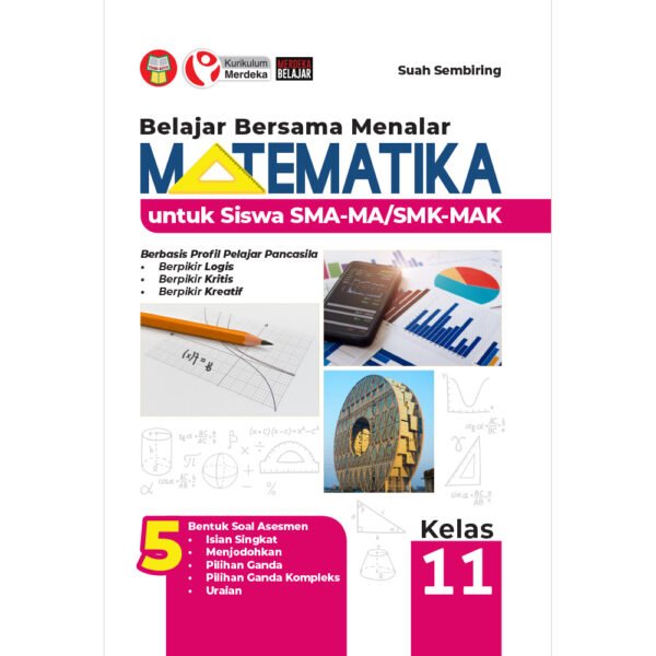 Buku Belajar Bersama Menalar Matematika untuk Siswa SMA-MA/SMK-MAK Kelas 11 ini disusun dengan menggunakan Kurikulum Merdeka yang tentunya mengusung semangat merdeka belajar. Adapun kebijakan pengembangan kurikulum ini tertuang dalam Keputusan Kepala Badan Standar, Kurikulum, dan Asesmen Pendidikan Kementerian Pendidikan, Kebudayaan, Riset, dan Teknologi Nomor 033/H/KR/2022 tentang Capaian Pembelajaran pada Pendidikan Anak Usia Dini, Jenjang Pendidikan Dasar, dan Jenjang Pendidikan Menengah pada Kurikulum Merdeka. Untuk mendukung pelaksanaan kurikulum tersebut, diperlukan penyediaan buku teks pelajaran yang sesuai dengan kebutuhan. Buku teks pelajaran ini merupakan salah satu bahan pembelajaran bagi siswa dan guru. Buku Belajar Bersama Menalar Matematika untuk Siswa SMA-MA/SMK-MAK Kelas 11 hadir untuk memperluas dan memperdalam materi inti yang tersaji dalam Buku Teks Utama yang ditetapkan oleh pemerintah, khususnya Kemendikbudristek. Buku ini mengarahkan siswa untuk memiliki dan meningkatkan kemampuan dalam berpikir logis, analitis, sistematis, kreatif, dan mandiri. Dengan demikian, siswa yang belajar Matematika dapat memiliki Profil Pelajar Pancasila dalam hal kemandirian, kemampuan bernalar kritis, dan kreatif. Disamping itu, di dalam buku ini juga sudah disajikan tipe-tipe asesmen dalam 5 bentuk, meliputi isiang singkat, menjodohkan, pilihan ganda, pilihan ganda kompleks, dan uraian. Susunan materi di dalam buku ini dikemas melalui bidang kajian Aljabar, Geometri, serta Analisis Data dan Peluang. Penekanan pada pemahaman konsep dan penyajian yang sistematis serta menggunakan bahasa yang mudah dipahami membuat sistematika penyajian buku ini berbeda dengan buku-buku matematika lainnya.