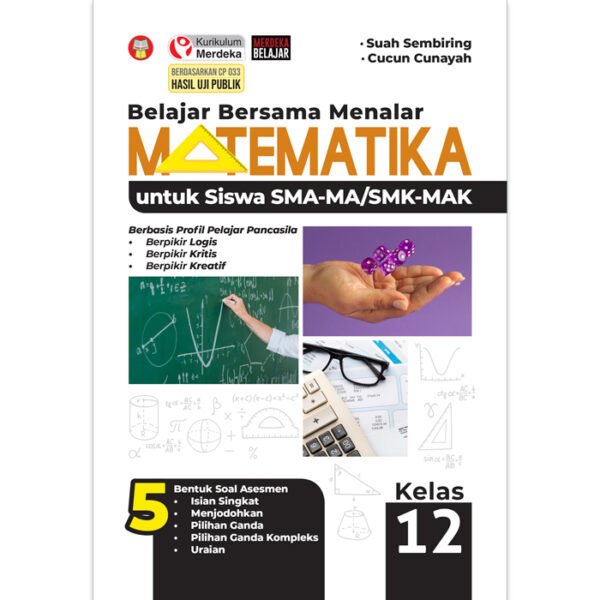 Buku Belajar Bersama Menalar Matematika untuk Siswa SMA-MA/SMK-MAK Kelas 12 ini disusun dengan menggunakan Kurikulum Merdeka yang tentunya mengusung semangat merdeka belajar. Adapun kebijakan pengembangan kurikulum ini tertuang dalam Keputusan Kepala Badan Standar, Kurikulum, dan Asesmen Pendidikan Kementerian Pendidikan, Kebudayaan, Riset, dan Teknologi Nomor 033/H/KR/2022 tentang Capaian Pembelajaran pada Pendidikan Anak Usia Dini, Jenjang Pendidikan Dasar, dan Jenjang Pendidikan Menengah pada Kurikulum Merdeka. Untuk mendukung pelaksanaan kurikulum tersebut, diperlukan penyediaan buku teks pelajaran yang sesuai dengan kebutuhan. Buku teks pelajaran ini merupakan salah satu bahan pembelajaran bagi siswa dan guru. Buku ini hadir untuk memperluas dan memperdalam materi inti yang tersaji dalam Buku Teks Utama yang ditetapkan oleh pemerintah, khususnya Kemendikbudristek. Buku Belajar Bersama Menalar Matematika untuk Siswa SMA-MA/SMK-MAK Kelas 12 ini mengarahkan siswa untuk memiliki dan meningkatkan kemampuan dalam berpikir logis, analitis, sistematis, kreatif, dan mandiri. Dengan demikian, siswa yang belajar Matematika dapat memiliki Profil Pelajar Pancasila dalam hal kemandirian, kemampuan bernalar kritis, dan kreatif. Susunan materi di dalam buku ini dikemas melalui bidang kajian Bilangan, Aljabar dan Fungsi, serta Analisis Data dan Peluang. Penekanan pada pemahaman konsep dan penyajian yang sistematis serta menggunakan bahasa yang mudah dipahami membuat sistematika penyajian buku ini berbeda dengan buku-buku matematika lainnya.
