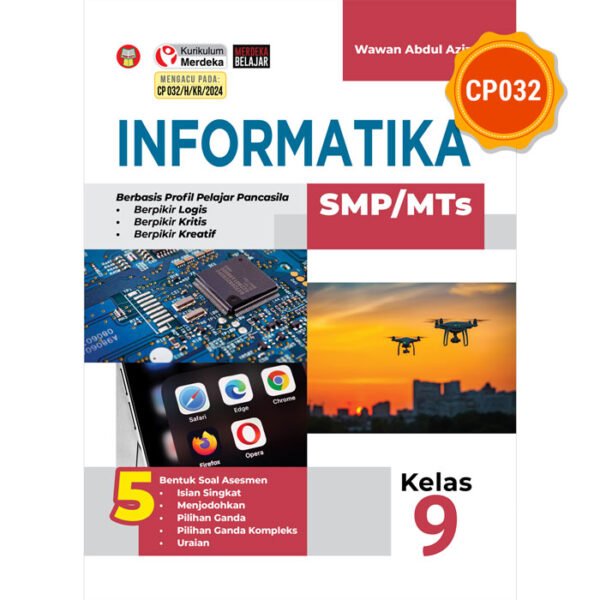 Buku Informatika untuk SMP/MTs Kelas 9 Di era sekarang ini, kebutuhan akan ilmu teknologi sangatlah penting, di mana semua aspek dalam kehidupan manusia sudah banyak menggunakan teknologi. Agar melek terhadap teknologi maka diperlukan mempelajari Informatika. Informatika adalah bidang ilmu mengenai studi, perancangan, dan pembuatan sistem komputasi, serta prinsip-prinsip yang menjadi dasar perancangan tersebut. Pembelajaran Informatika di jenjang SMP/MTs Kelas 9 ini disusun berdasarkan Capaian Pembelajaran (CP) yang terdiri atas: Berpikir Komputasional, Teknologi Informasi dan Komunikasi, Sistem Komputer, Jaringan Komputer dan Internet, Analisis Data, Algoritma dan Pemrograman, Dampak Sosial Informatika, dan Praktik Lintas Bidang. Dengan adanya mata pelajaran Informatika ini, diharapkan dapat melahirkan generasi melek teknologi di masa yang akan datang dengan kemampuan bernalar kritis dan kreatif sesuai profil pelajar Pancasila. Buku Informatika untuk SMP/MTs Kelas 9 ini dilengkapi dengan aktivitas siswa yang dilakukan secara mandiri maupun kelompok. Aktivitas siswa yang disajikan dalam buku juga mendukung kegiatan praktik. Untuk mengevaluasi siswa, di akhir setiap bab diberikan soal-soal untuk mengukur ketercapaian siswa.