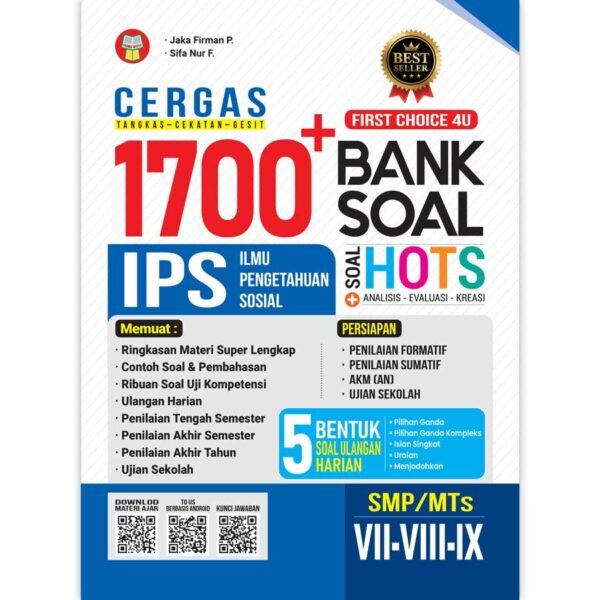 Bagi siswa SMP/MTs, berbagai jenis ujian akan dilaluinya, mulai dari Ulangan Harian, Penilaian Semester, AKM & SK, sampai Ujian Sekolah. Hal itu tentu saja harus dilewati dengan proses belajar, berlatih, dan bekerja keras. Dalam proses berlatih itulah, buku ini hadir sebagai salah satu kunci bagi kamu untuk mencapai prestasi yang diinginkan. Buku ini berisi rangkuman materi, contoh soal dan pembahasan, serta beragam soal Ilmu Pengetahuan Sosial kelas VII hingga IX yang ditulis secara ringkas, namun padat materi. Selain itu, disajikan pula beragam soal secara berjenjang, mulai dari yang termudah hingga tersulit. Begitu pun dengan ragam soal HOTS untuk melatih kamu berpikir kritis dan mampu menalar. Lalu, bagaimana cara mengukur diri bahwa kamu telah memahami materi-materi yang tersedia? Untuk menjawab kebutuhan tersebut, buku ini memuat ribuan soal latihan yang beragam disertai kunci jawaban untuk semua latihan agar kamu dapat mengukur kemampuanmu secara mandiri. Mengakrabkan diri dengan soal-soal tipe Ulangan Harian, Penilaian Semester, AKM & SK, dan Ujian Sekolah tentunya akan membuatmu terbiasa untuk mengerjakan soal-soal tersebut. Dengan demikian, kamu akan lebih mudah menjawabnya dan mendapatkan hasil yang memuaskan. Practice makes perfect! Ayo berlatih bersama Cergas 1700 Plus Bank Soal Ilmu Pengetahuan Sosial SMP/MTs untuk meraih impianmu!